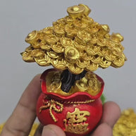 This handcrafted decorative tree features golden ingots on a sturdy trunk, placed in a vibrant red pot. Inspired by traditional Feng Shui motifs, it represents prosperity and abundance in design. The piece adds a refined touch to interiors and makes a thoughtful gift option for decorative or cultural purposes.